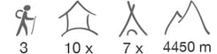 Auf dem Trekking übernachten wir in Kuppelzelten mit zwei seitlichen Eingängen von Jack Wolfskin. Gepäck kann im Vorzelt oder auch im Inneren des Zeltes untergebracht werden. Wir haben die meisten erhältlichen Modelle getestet und das ausgewählte Modell ist der beste Kompromiss in punkto Komfort, Windstabilität und Einfachheit im Aufbau.