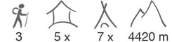 Auf dem Trekking übernachten wir in Kuppelzelten mit zwei seitlichen Eingängen von Jack Wolfskin. Gepäck kann im Vorzelt oder auch im Inneren des Zeltes untergebracht werden. Wir haben die meisten erhältlichen Modelle getestet und das ausgewählte Modell ist der beste Kompromiss in punkto Komfort, Windstabilität und Einfachheit im Aufbau.