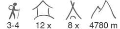 Auf dem Trekking übernachten wir in Kuppelzelten von Jack Wolfskin mit zwei seitlichen Eingängen. Gepäck kann im Vorzelt oder auch im Inneren des Zeltes untergebracht werden. Wir haben die meisten erhältlichen Modelle getestet und das ausgewählte Modell ist der beste Kompromiss in punkto Komfort, Windstabilität und Einfachheit im Aufbau. Weiter haben wir ein Ess-, Koch- und Toilettenzelt mit dabei. Klappstühle und Tische sind vorhanden, da das lange Sitzen auf dem Boden für uns Europäer meistens ermüdend ist. Selbstverständlich haben wir auch sämtliches Geschirr, Besteck, Tassen etc. dabei.